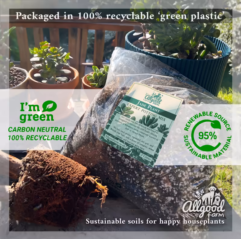 🌱 IMPROVED RECIPE: From September 2025 we've made some changes to our Jade soil recipe to make it even better for your precious Money Plants! It now contains a boost of lava rock grit, as well as extra biochar and pine bark for increased aeration and a better moisture balance.