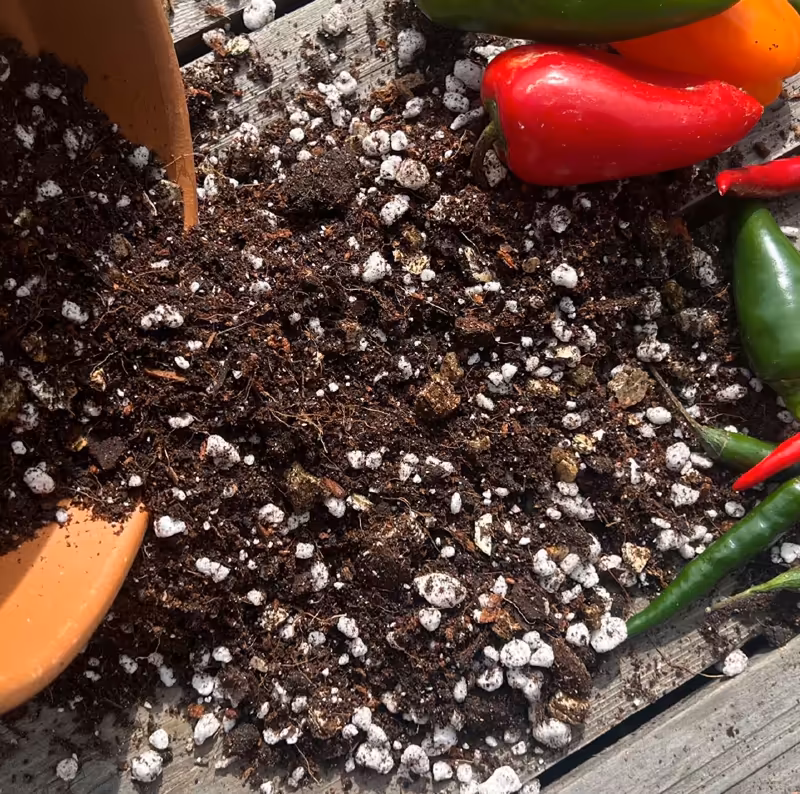 A fluffy compost blend enriched with organic ingredients for fruitful chilli plants.