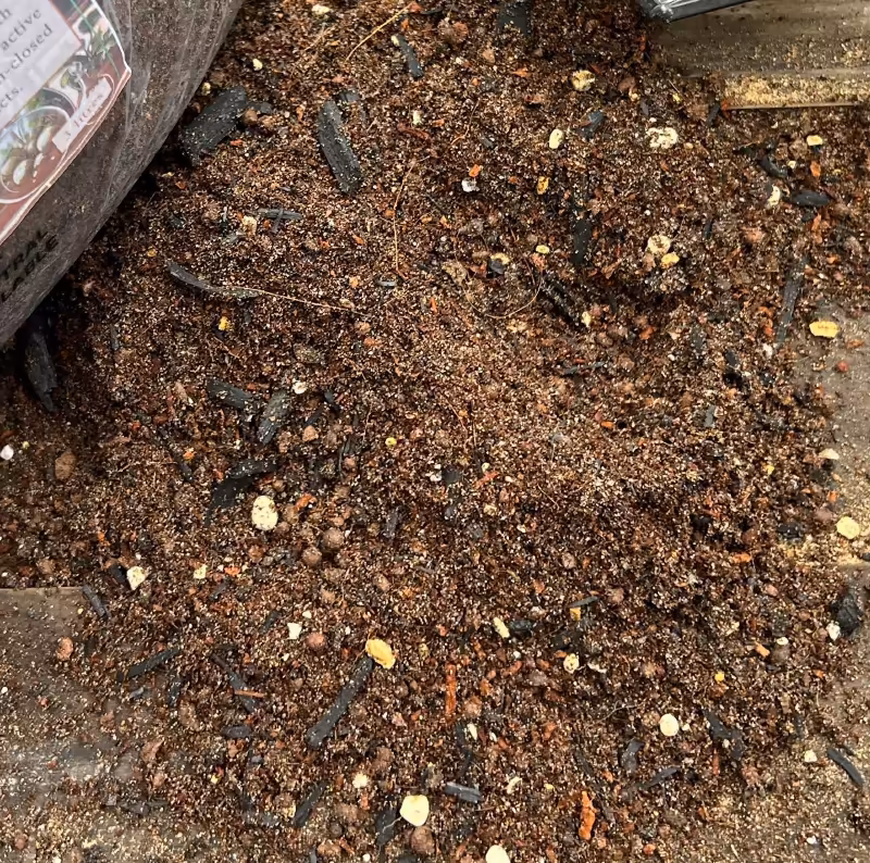 In the mix: coco coir, epanded clay grit, worm castings, washed sand, raw biochar