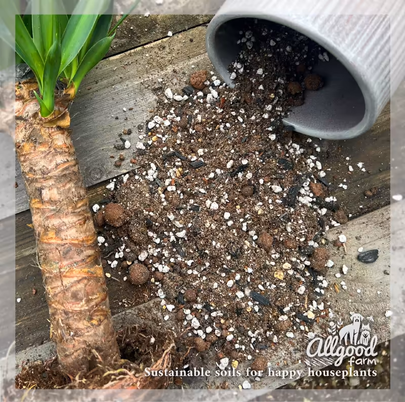 We pack Allgood Farm repotting soils with varied ingredients to reproduce natural soil structure, aeration and moisture balance, with each mix tailored to a specific plant or family of plants. Our soils contain wholesome natural additions like pine bark (from sustainable British forestry), sphagnum moss (hand harvested in Wales), expanded clay (we use various grades and shapes chosen for each mix), and many others.
